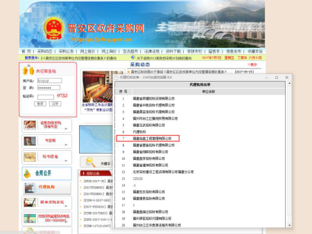 中国政府采购网福建省分网代理机构备案登记网页截图